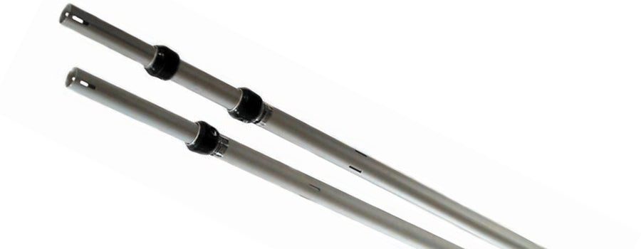 Both the horizontal drape supports & vertical uprights are telescopic. The supports can extend from 3ft - 14ft while the uprights range in extension between 6ft - 20ft. No tools are required to assemble a Pipe & Drape system, with upright extensions being held in places using the Slip-Lock collar assembly. The drape supports slot into the uprights using a heavy duty zinc-plated steel hook. All uprights & supports have clear anodized coatings to help keep drapery clean.