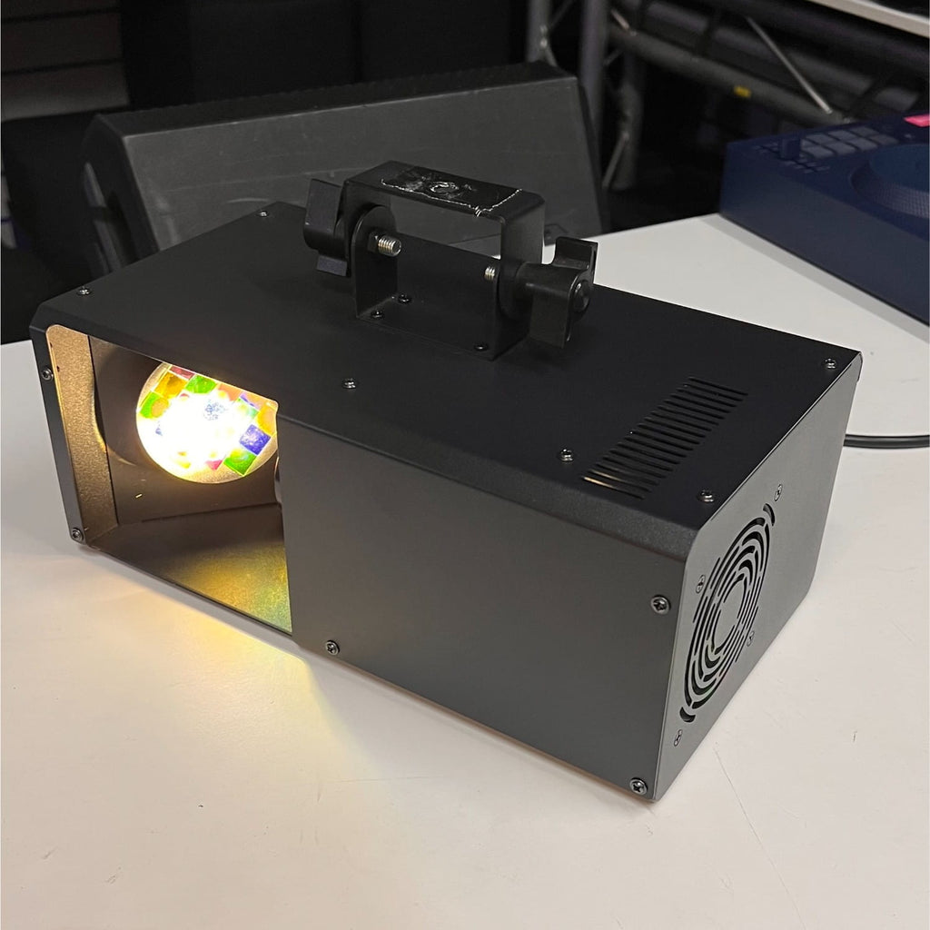 Here we have the Equinox Graphix; project a multitude of multicoloured patterns for your venue! Featuring a rotating graphics wheel and multicoloured mirror dish, offering a super wide 75° beam angle and covering over an 11m span. Suitable for a variety of events and functions to brighten up, and fill the room with colour.