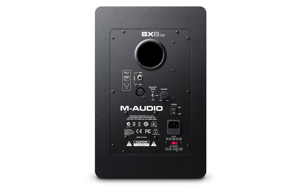 M-Audio understand no two listening spaces are the same. Therefore, the BX8- D3 monitors custom tailors your sound to your environment, so you will always experience sonically-true, reassuringly-accurate sound reproduction. Negate problematic bass frequencies and limit the impact of nuisance standing waves thanks to BX8-D3’s special Acoustic Space control for precise adjustment of BX8-D3’s sound output in line with your studio space.