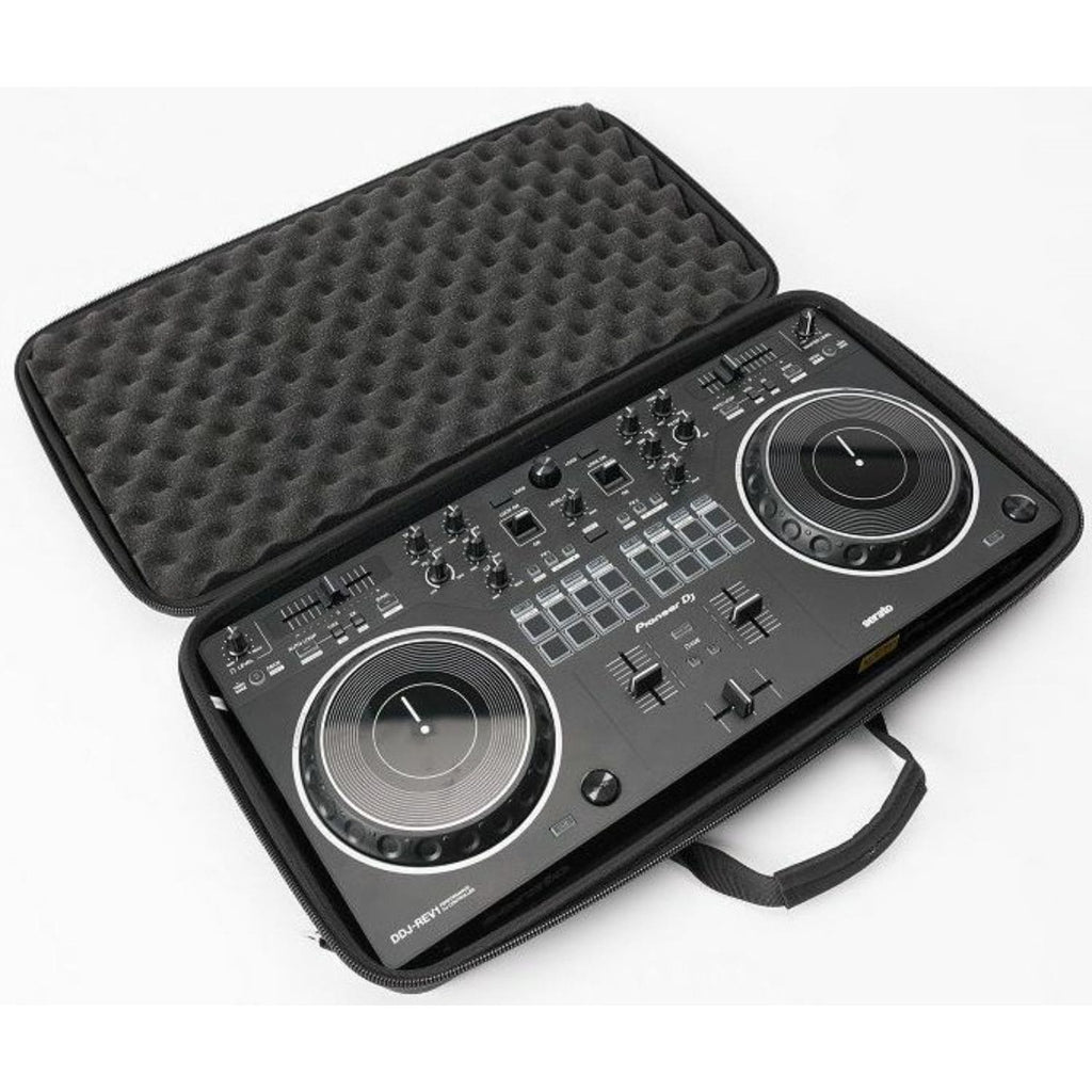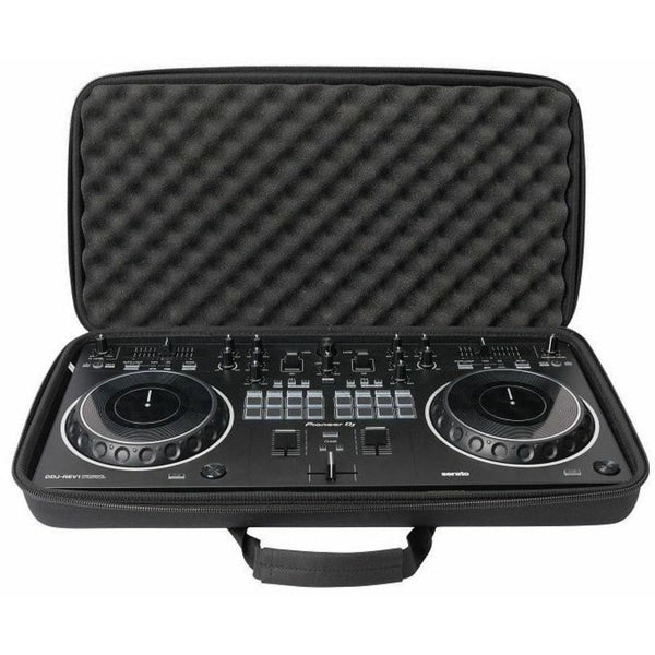 The new CTRL Case DDJ-REV1 is a super lightweight and compact hard shell case, offering a safe and comfortable way to carry (incl. shoulder-strap) your Pioneer DDJ-REV1 controller. Made of lightweight and rigid Durashock moulded EVA shell, the inside lid is lined with high density egg-crate foam to protect the displays, jog wheels, and controls.