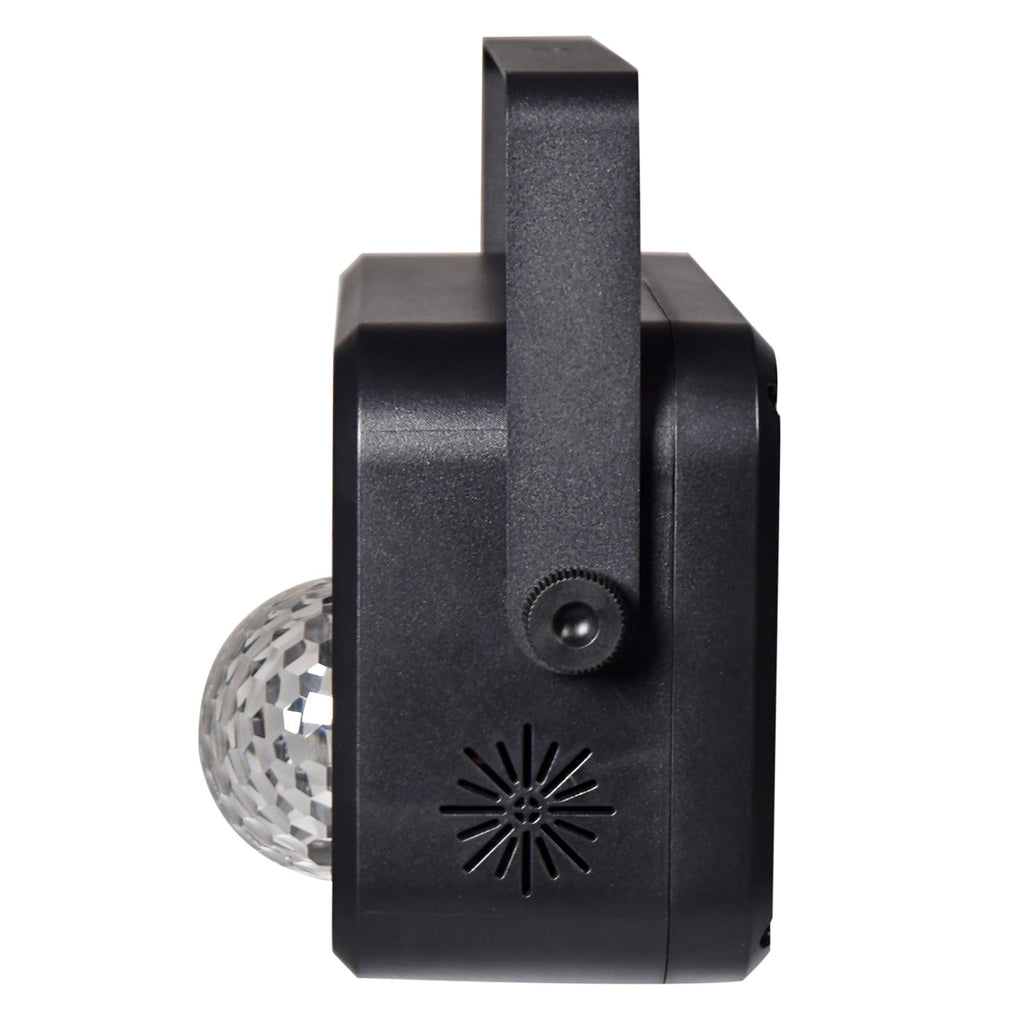 A lightweight 6-in-1 light effect combining a range of colourful GOBOs, 10W RGBW magic ball, 4x White Strobe/UV LEDs, 4x 4W RGBW PARs and Dual colour Laser in one convenient fixture. Easy to setup and use via an array of integrated automatic programs or sound to light. More precise control is provided via either 16-channel DMX connection or the included IR remote control.