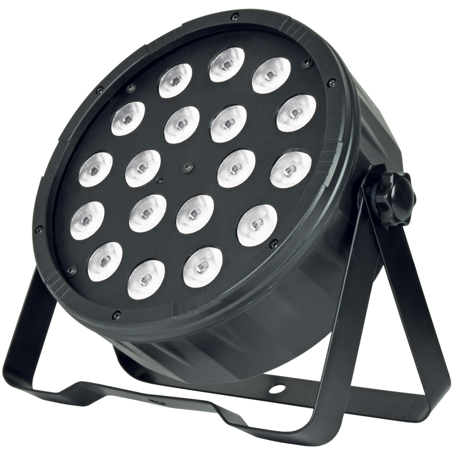 A lightweight and compact LED PAR Can fitted with 18 bright 1W cool white LEDs. This unit can be controlled by auto, sound-to-light, master/slave programs or via DMX and provides a great value solution for white background wash and spot illumination.