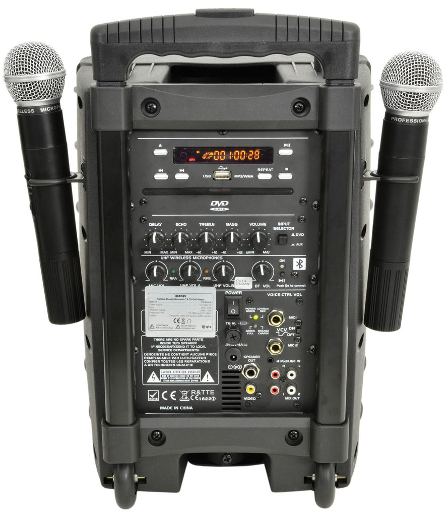 QTX PAV8 Portable PA Set with UHF Mics, Bluetooth & DVD
