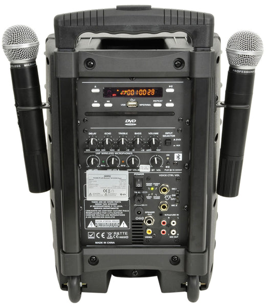 QTX PAV8 Portable PA Set with 2x UHF Wireless Microphones, CD/DVD Player and Bluetooth