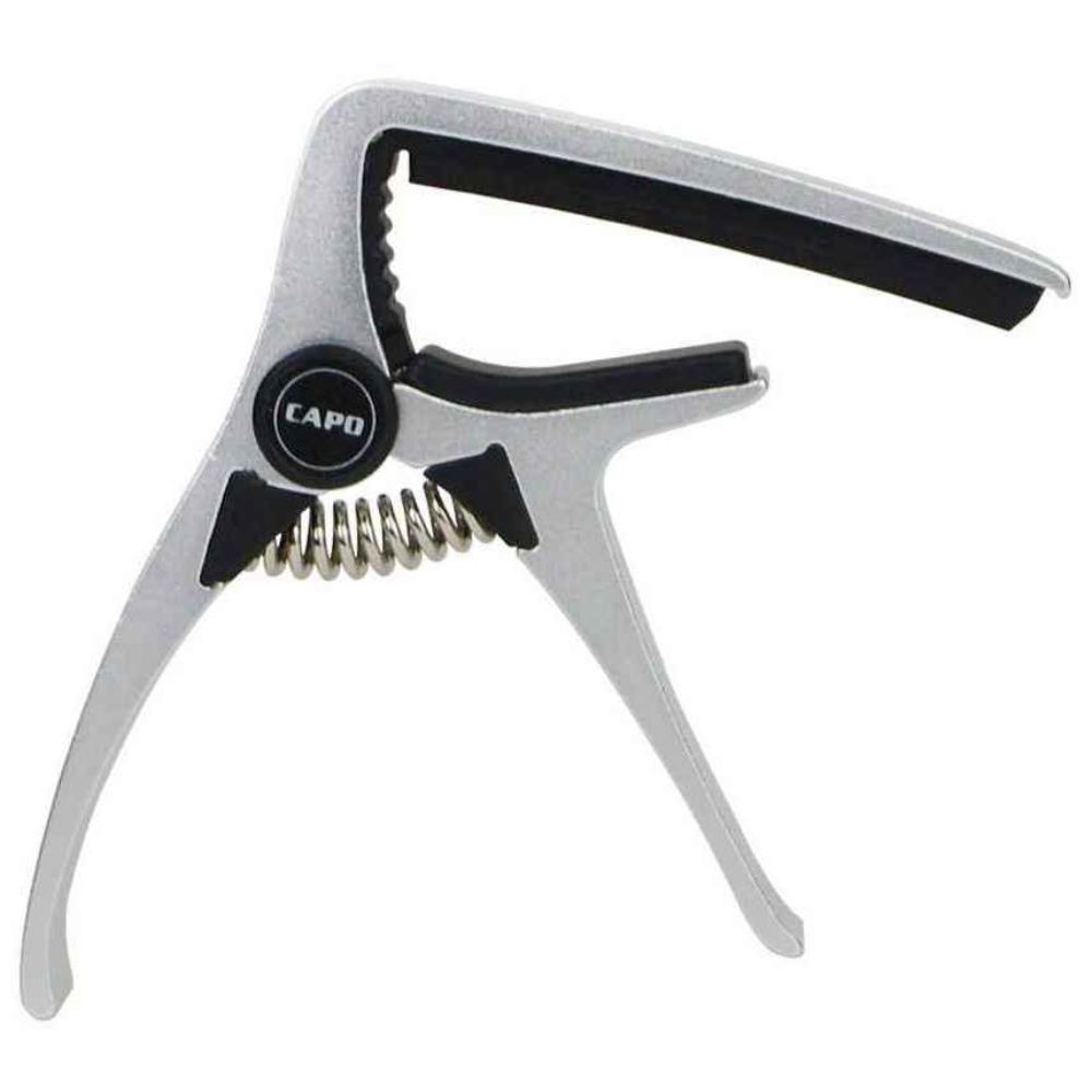 Spring loaded, alloy guitar capo, designed for one hand easy operation.