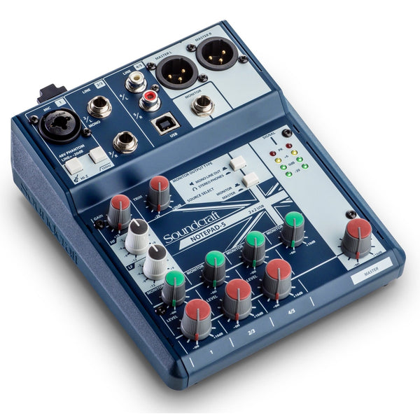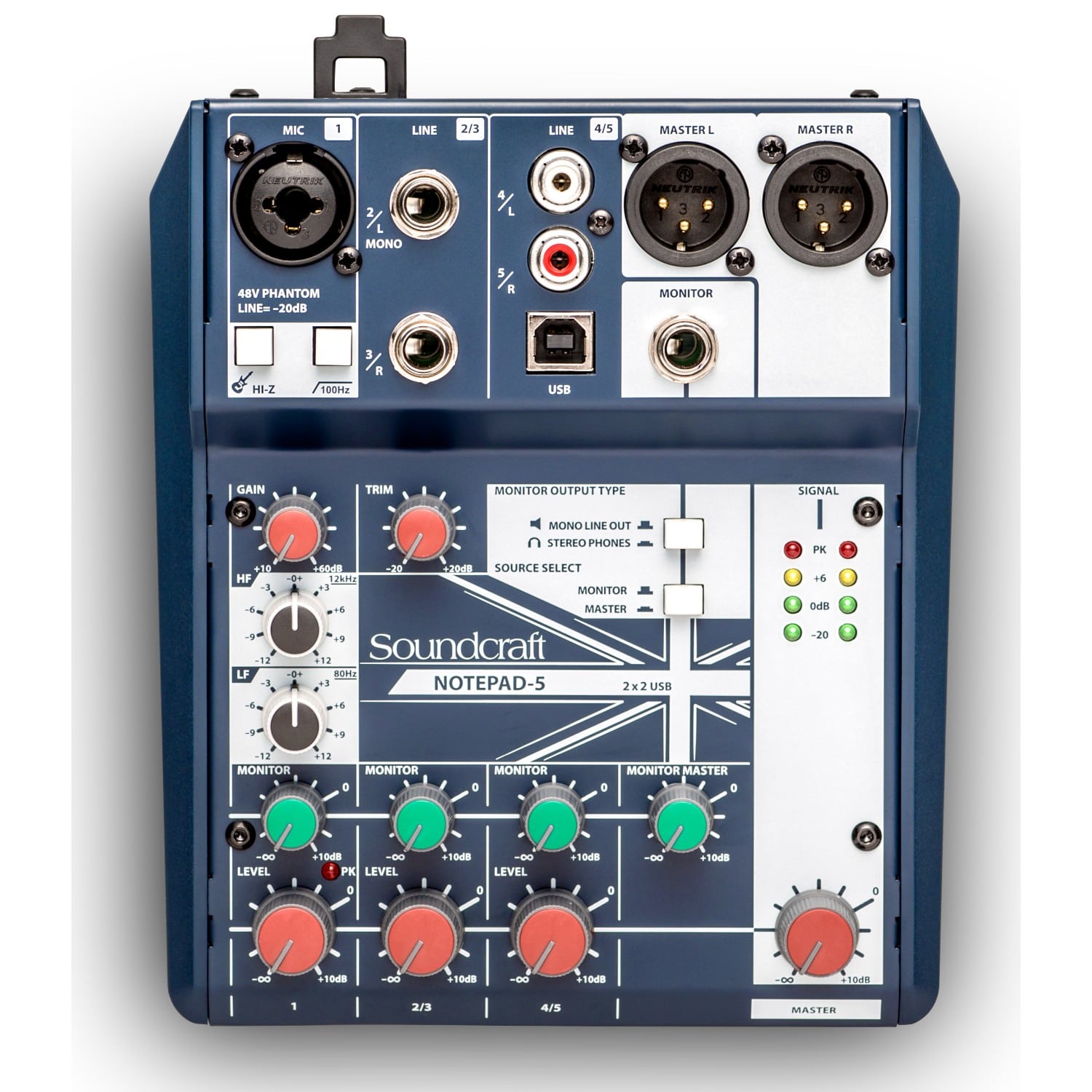 The Soundcraft Notepad-5 mixer makes it easy to get legendary Soundcraft sound for your music, podcasts or videos. The Notepad-5 combines professional-grade analog components and a built-in USB audio interface to use with your favorite Mac or PC editing software. Whether you’re a singer-songwriter or a podcaster, Notepad mixers offer best-in-class features like renowned Soundcraft mic preamps, so you can bring a level of polish to your creative productions that’s sure to impress.