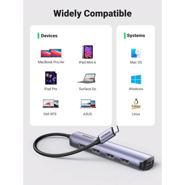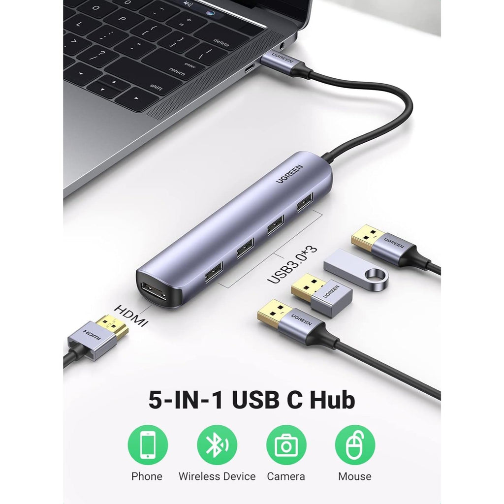 UGREEN 5-in-1 USB-C Hub Multiport Adapter (4K 30Hz HDMI, 4x 5Gbps USB-A 3.0)
